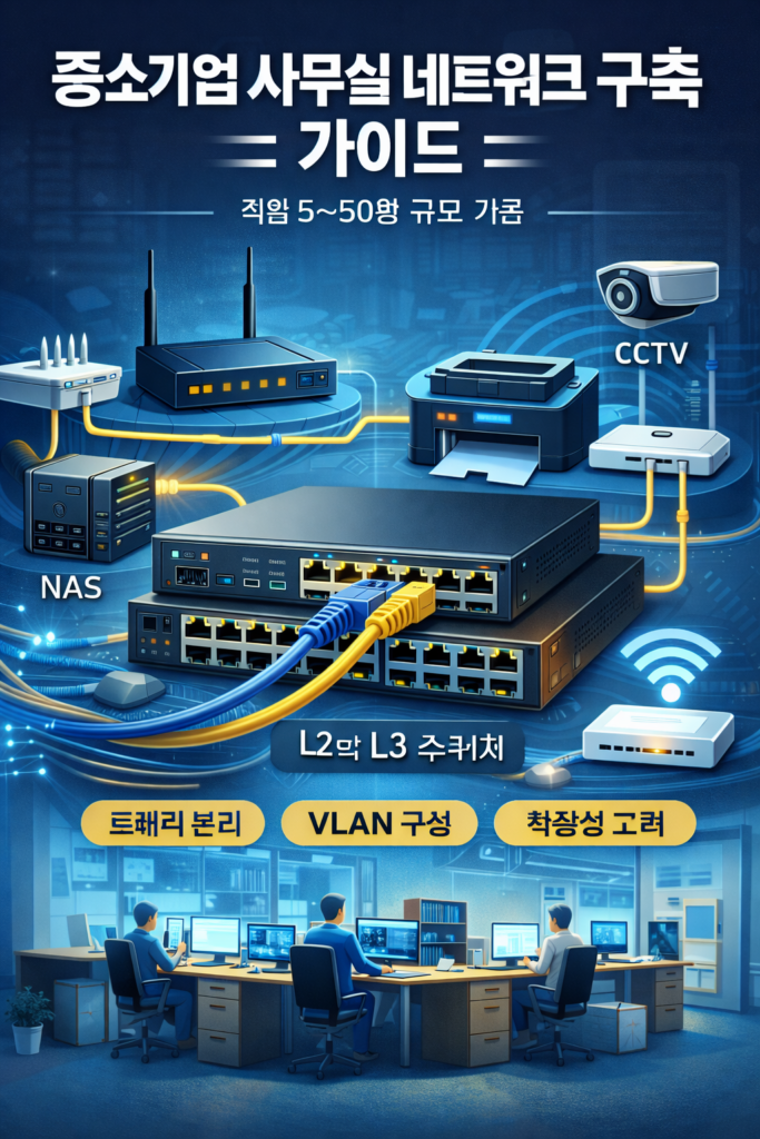 이 글에서는 직원 5~50명 규모의 사무실을 기준으로, 실제 운영에 적합한 네트워크 구축 기준을 정리합니다.